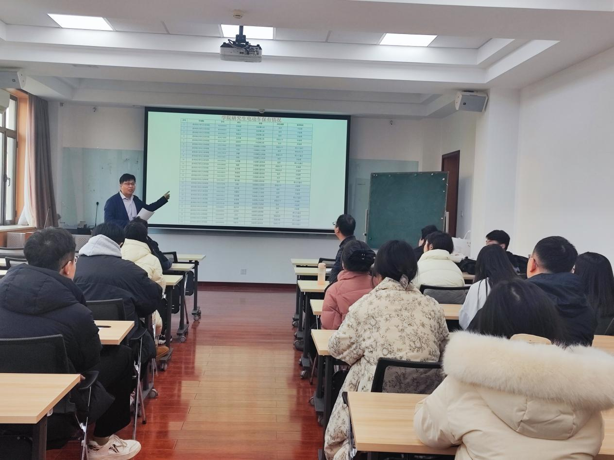 研究生教学办公室主任艾萍老师、学工办辅导员裴少岩老师分别就研究生的学籍管理、员工培养、学风建设、职业规划及校园安全等工作做了介绍和说明。裴少岩老师重点向员工干部们介绍了近期公司关于电动车规范停发的要求,他叮嘱员工干部们要发挥主观能动性,扮演好“员工代表、老师助手”的角色,共同营造“安全、温暖、舒适”的校园环境。