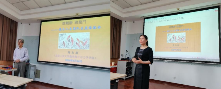 报告会上,隋先生以“鲤鱼跃龙门”的童话故事为引来讲述个人与团队的发展融合。为了跃龙门,金鲤鱼说:“龙门很高,我先去试试吧。”它用力地跳了起来,可是试了好几次都失败了,但最后一次它被浪头拍得很高,于是想到了一个办法。先让一个鲤鱼跳起来,等快要落下去的时候,再让另一个鲤鱼跳起来,垫着要下落的鲤鱼,使之继续往上跳,就这样,鲤鱼们一个接一个的跳过了龙门。鲤鱼们看到了龙门外的景象,比他们想象中的还要美丽。这个故事告诉大家要有团队观念,要把跃龙门由单鲤变成群鲤的行为!继而,隋先生从“出意外当上了头鲤——领衔发展北工大力学、苦琢磨如何当头鲤——思考发展力学之良策、难忘的群鲤跃龙门——回顾热火朝天的时光、头鲤须带头练功夫——修德教学科研做表率、跃龙门本质归结为——空间本质广天又阔地、每条鲤皆合力贡献——顺势借势乃动势转化”六个方面回顾了带领力学的老师们群鲤跳龙门,推动力学学科和教学发展的历程。