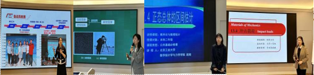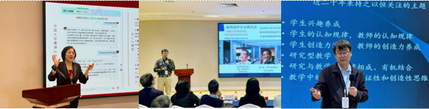 报告环节,国家级人才项目获得者山东大学蒋晓芸教授探讨了数智赋能的教学理念,并以高等数学为例,介绍了打造一流数智化课程及教材的实践与设想;国家级人才项目获得者上海大学王卿文教授从教育数学与一流课程建设的关系出发,介绍了线性代数国家一流课程的建设和体会;国家级教学优秀成果一等奖获得者、清华大学殷雅俊教授分享了指导青年教师参加讲课大赛的经历,并讲授了如何在教学设计中运用明辨性思维来提炼课程的亮点;北京科技大学曹丽梅、华北电力大学(保定)赵美玲、w66旗舰厅官网赵旭和王晶等四位省市级高校青年教师教学基本功比赛一等奖获得者分别进行了示范课演示。