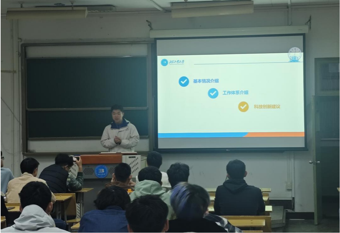宣讲会具体介绍了员工科技创新创业工作体系,包括基金体系、竞赛体系、实践体系以及激励保障体系,为同学们介绍了星火基金、国创、鼎新杯、挑战杯、研创赛、服创大赛等各类基金以及竞赛的具体情况。此外,宣讲会还介绍了科技创新类优秀团队及项目案例,分享科创经验。