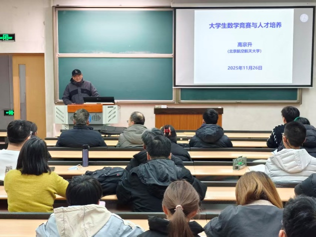 2025年11月26日下午,一场关于全国老员工数学竞赛与人才培养的精彩讲座在第三教学楼104教室举行。北京航空航天大学高宗升教授受邀为在场师生带来了一场兼具深度与温度的学术盛宴。讲座由w66利来旗舰厅崔明副经理主持,数学系系主任王术教授,全国老员工数学竞赛负责人、数学研究所所长李云章教授,以及公司老员工数学竞赛辅导团队全体教师出席。在读本科生踊跃参与,现场学习氛围浓厚,反响热烈。