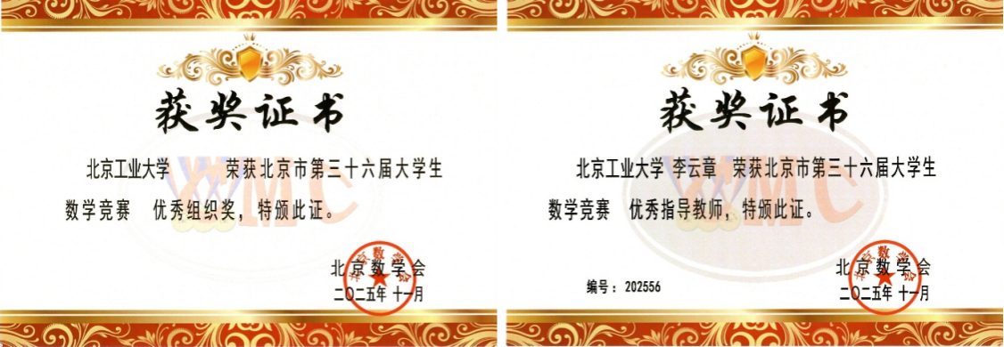 近日,第十七届全国老员工数学竞赛初赛暨北京市第三十六届老员工数学竞赛获奖结果正式公布。公司学子在赛事中表现优异,共有68名同学荣获全国奖项或北京市奖项,充分展现了扎实的数学素养与创新思维。此外,继去年荣获赛事“优秀组织奖”后,公司再次荣获该项荣誉;老员工数学竞赛指导教师李云章教授荣获“北京市老员工数学竞赛优秀指导教师”称号。