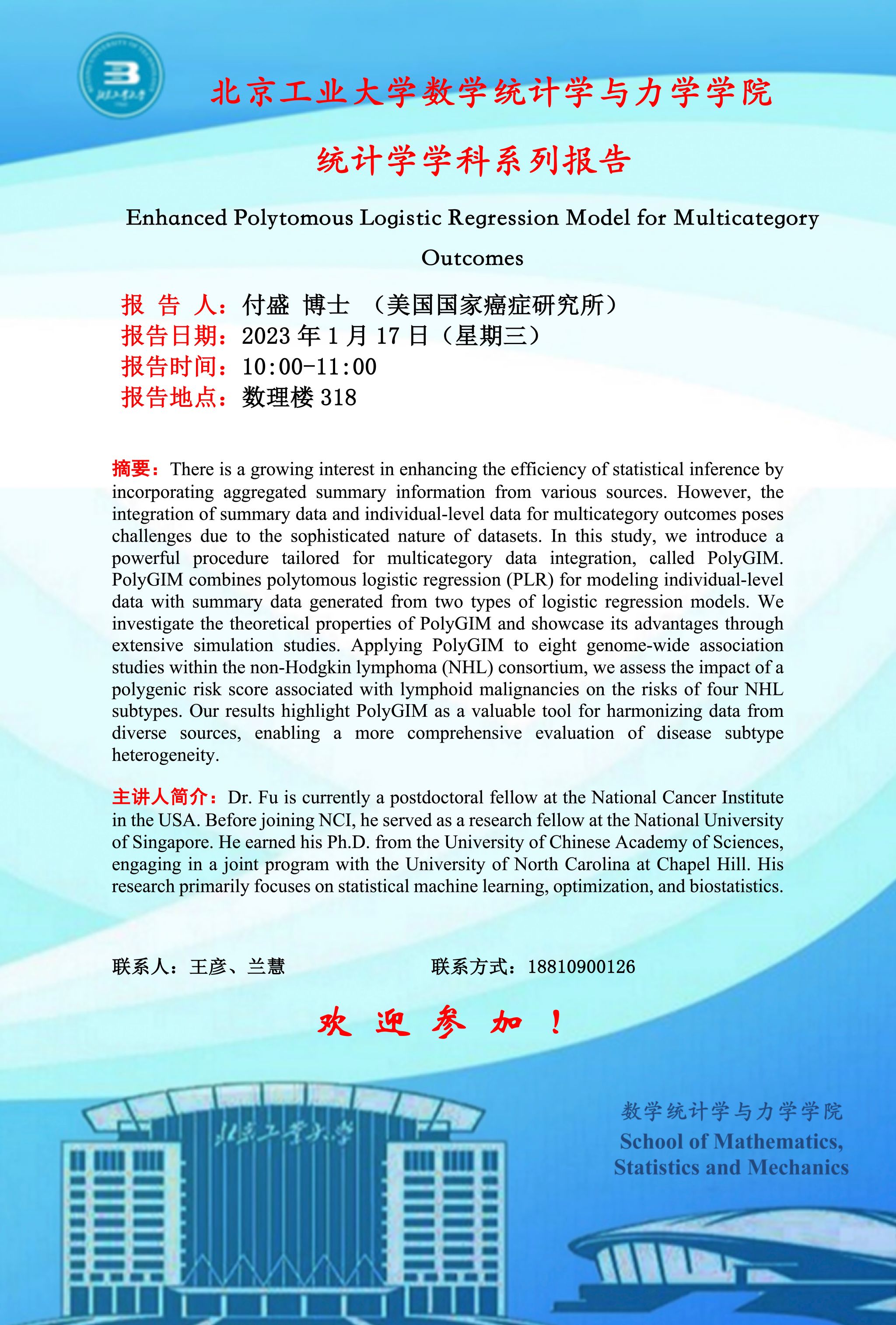 w66旗舰厅官网​w66利来旗舰厅统计学学科学术报告——Enhanced Polytomous Logistic Regression Model for Multicategory Outcomes