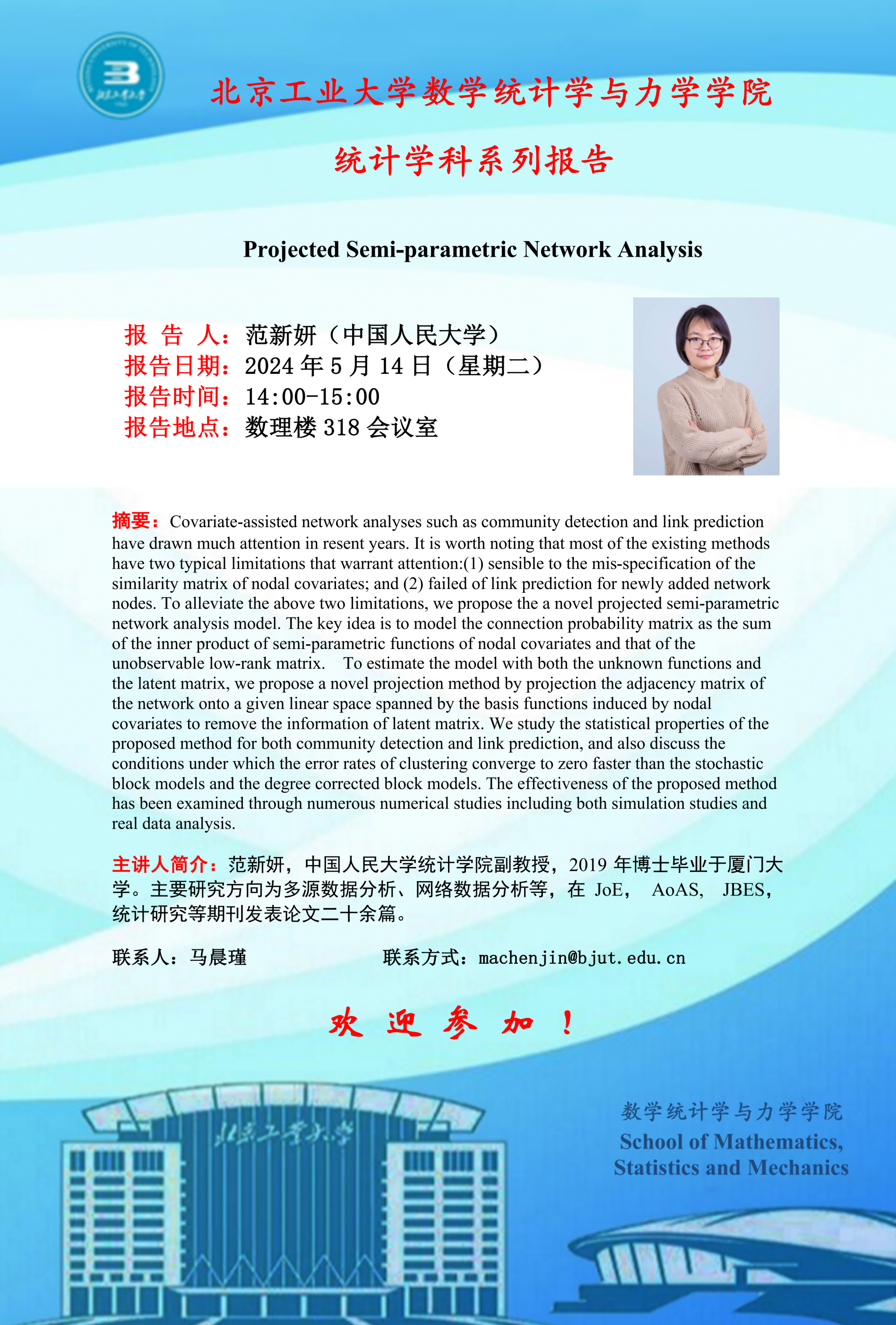 【数统力|学术报告】——Projected Semi-parametric Network Analysis