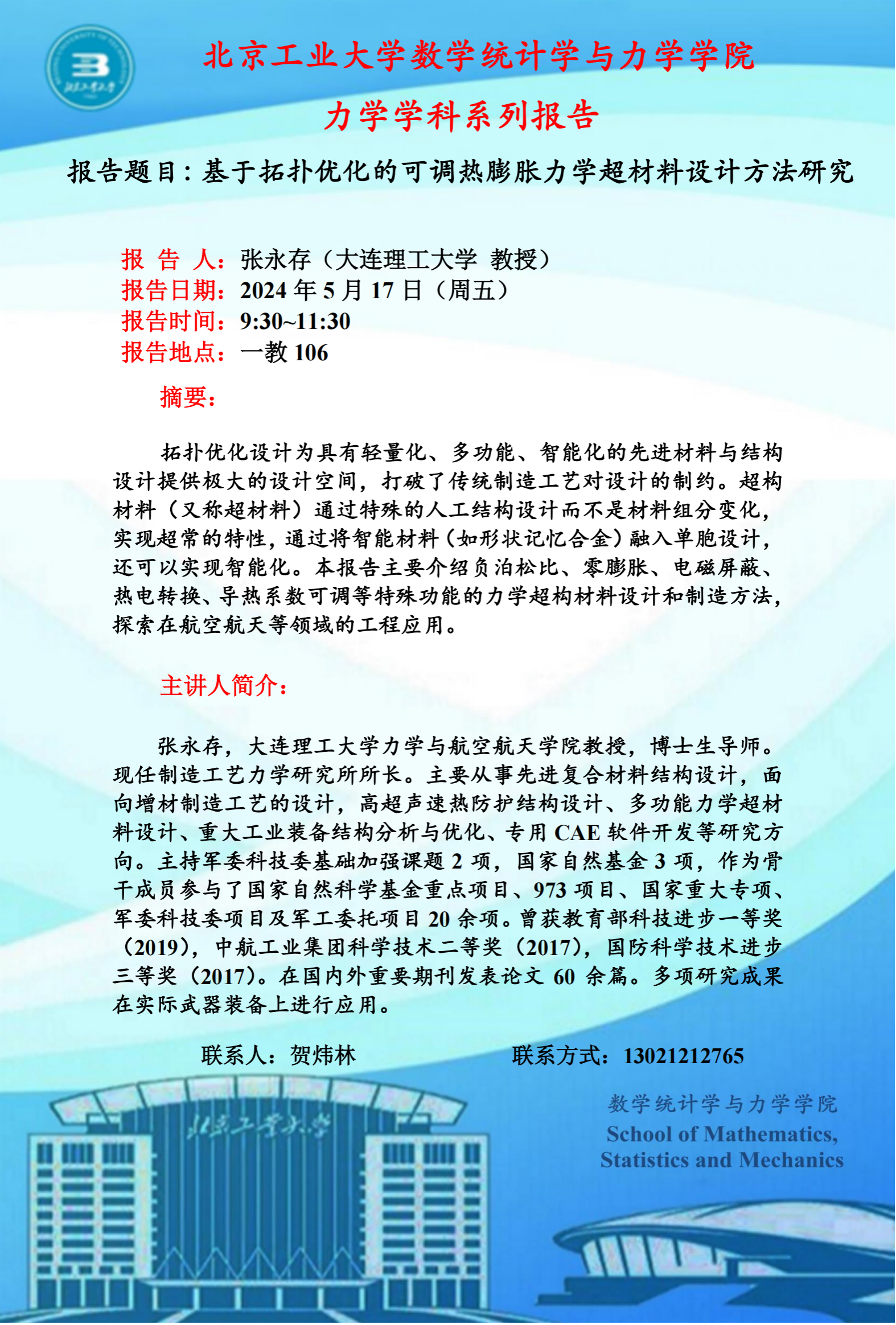 【数统力|学术报告】——基于拓扑优化的可调热膨胀力学超材料设计方法研究
