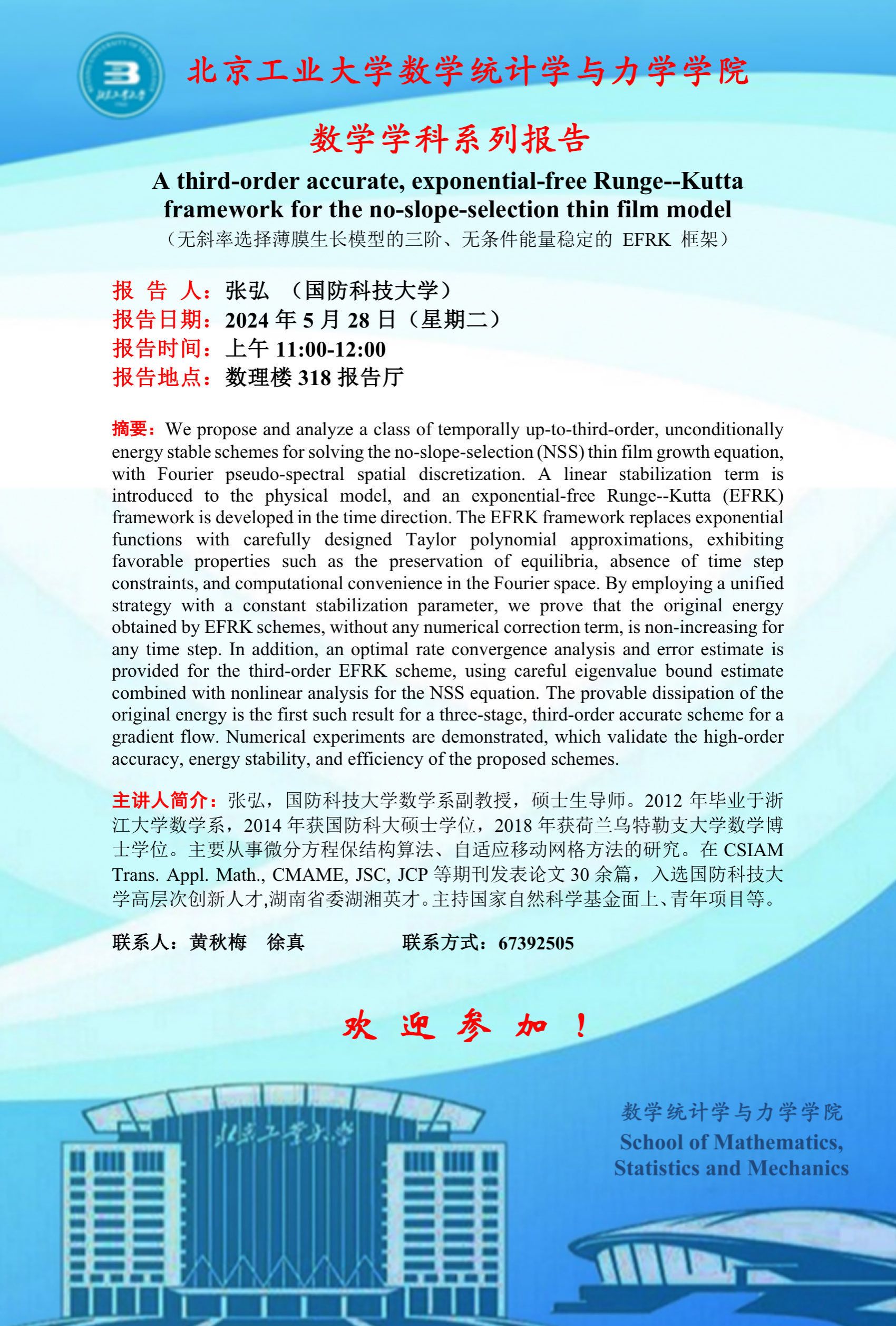 【数统力|学术报告】——A third-order accurate,exponential-free Runge-Kutta framework for the no-stope-selection thin film model