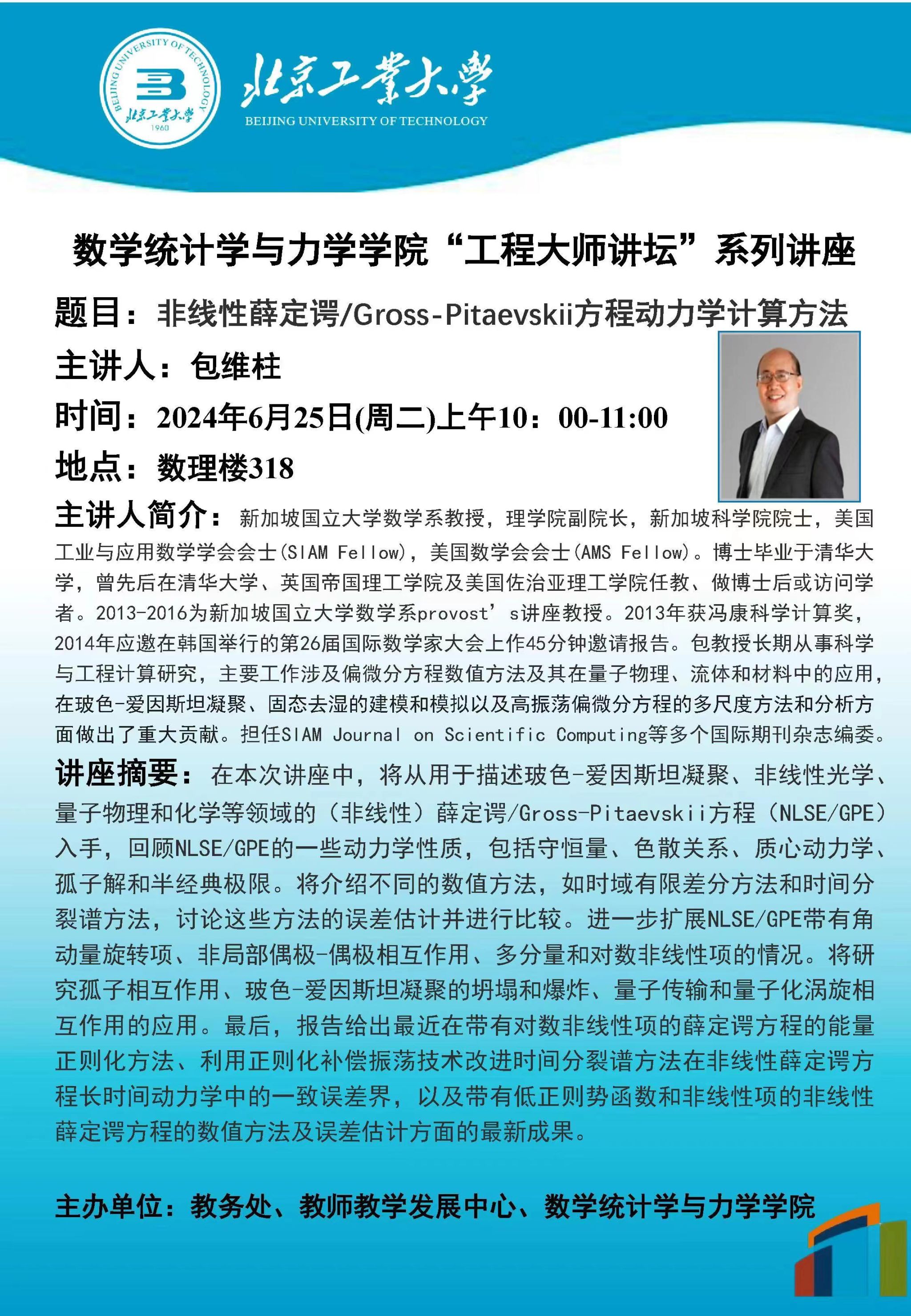 【数统力|学术报告】——非线性薛定谔/Gross-Pitaevskii方程动力学计算方法