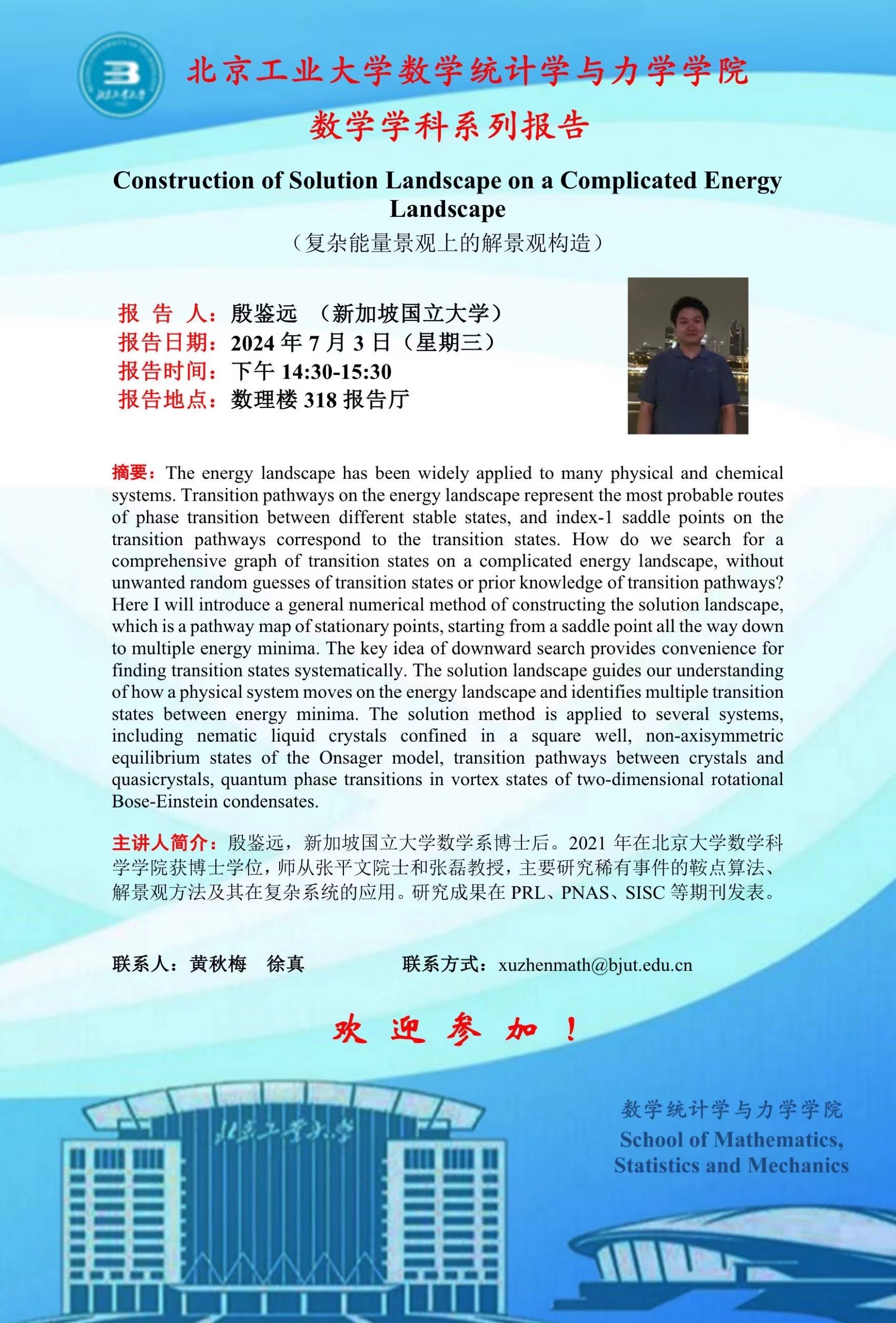 【数统力|学术报告】——Construction of Solution Landscape on a Complicated Energy Landscape