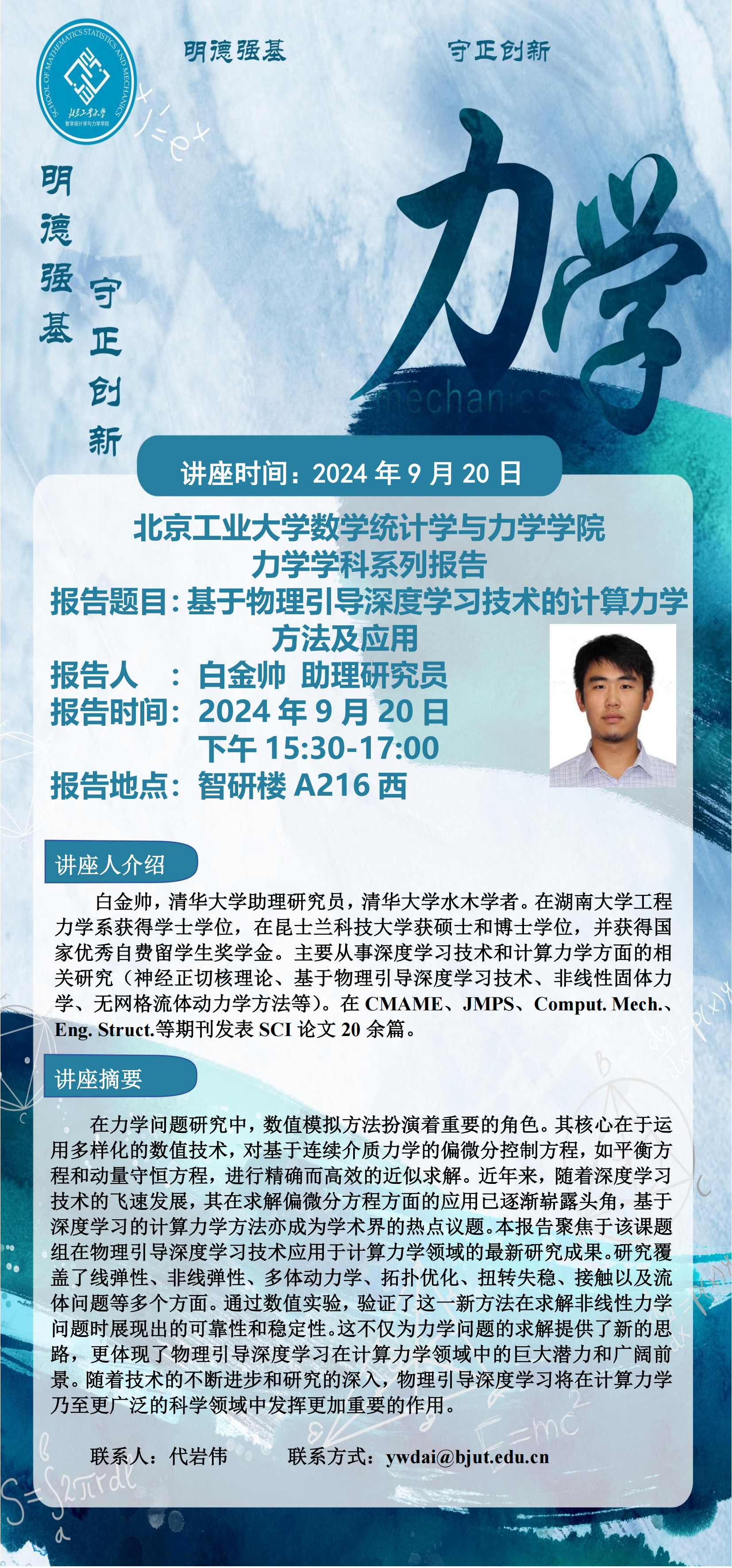 【数统力|学术报告】——基于物理引导深度学习技术的计算力学方法及应用