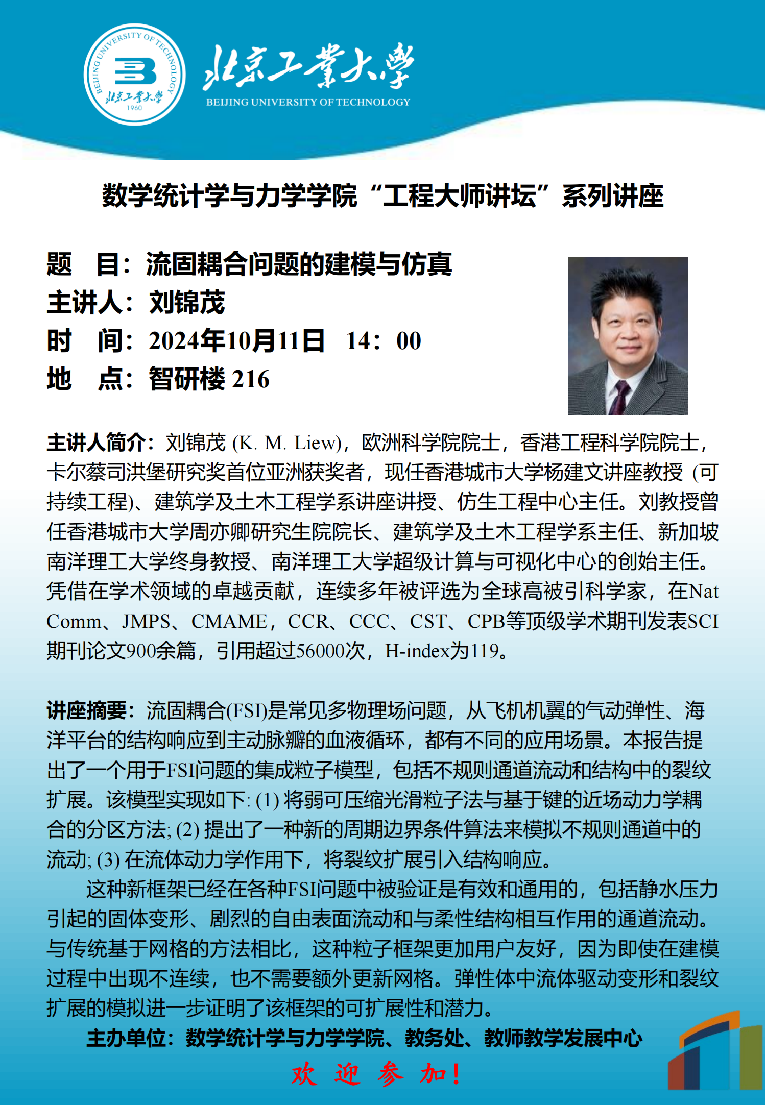 【数统力|学术报告】——工程大师讲坛“流固耦合问题的建模与仿真”