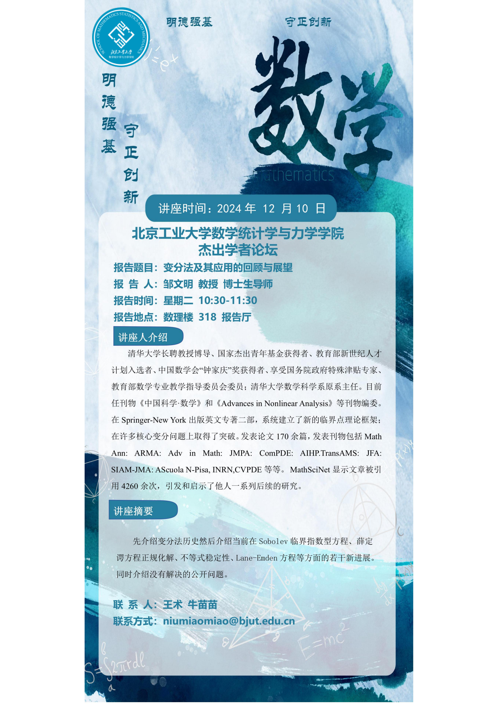 【数统力|学术报告】——杰出学者论坛“变分法及其应用的回顾与展望”