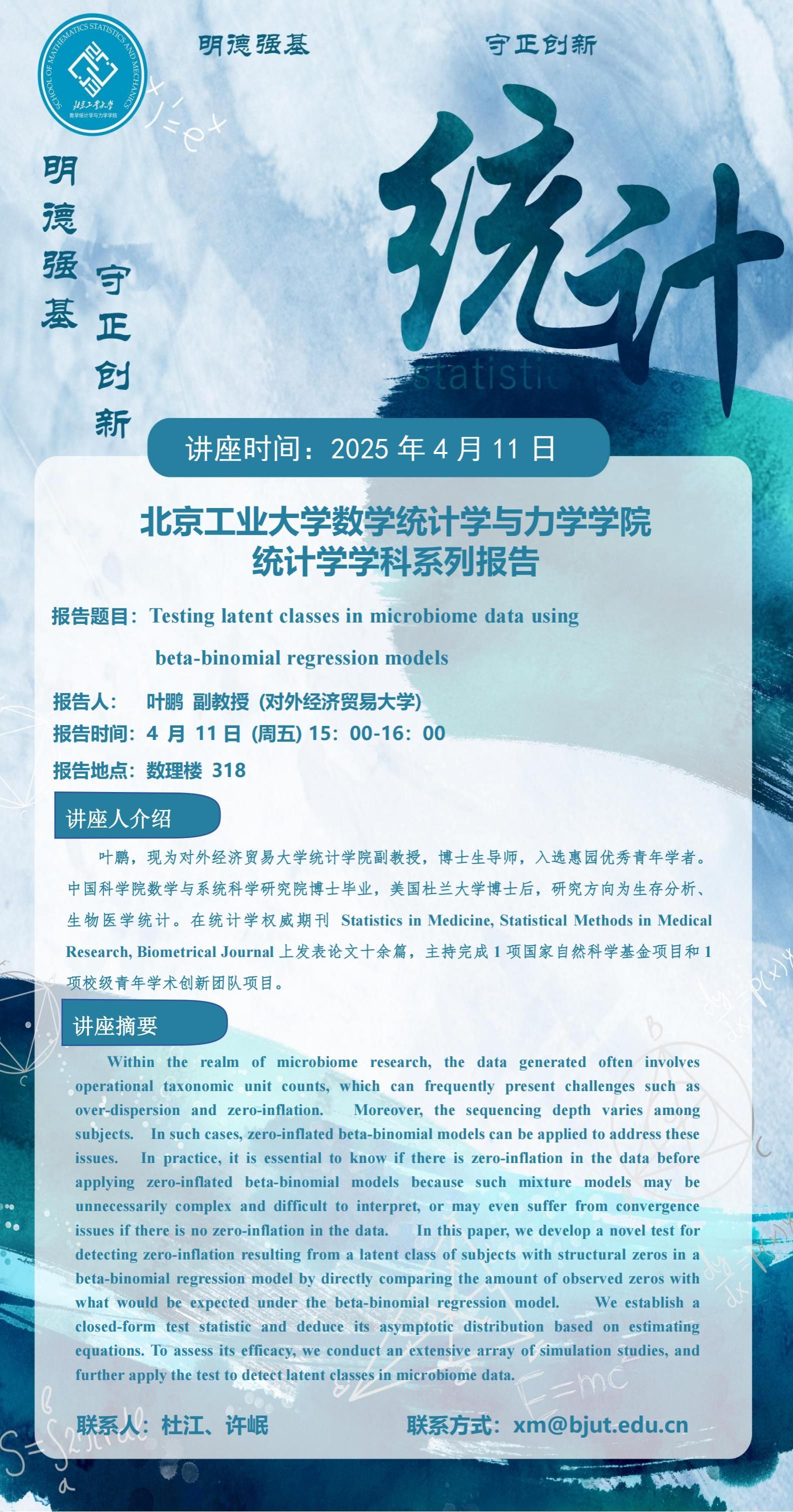 【数统力|学术报告】——Testing latent classes in microbiome date using beta-binomial regression models