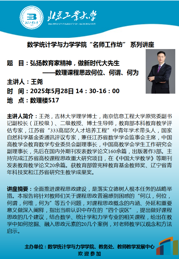 【数统力|学术报告】——弘扬教育家精神,做新时代大先生-数理课程思政何为、何谓、何为