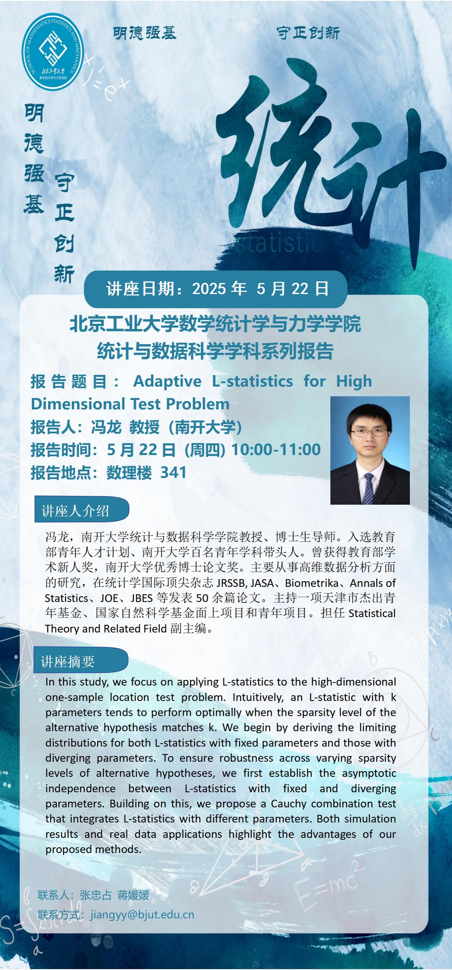 【数统力|学术报告】——Adaptive L-statistics for High Dimensional Test Problem