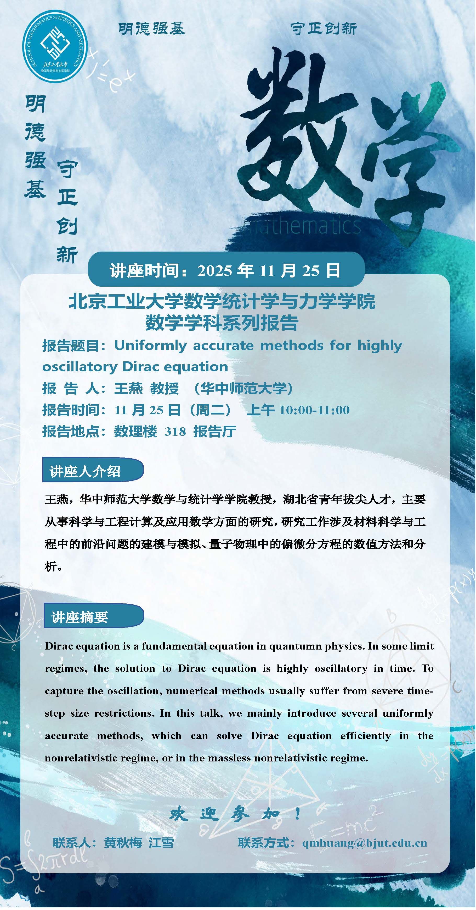 【数统力|学术报告】Uniformly accurate methods for highly oscillatory Dirac equation