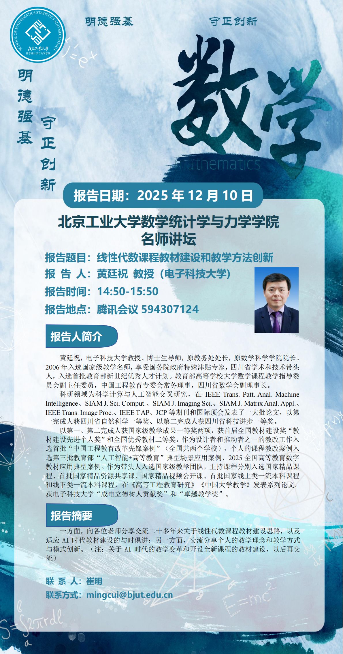 【数统力|学术报告】线性代数课程教材建设和教学方法创新